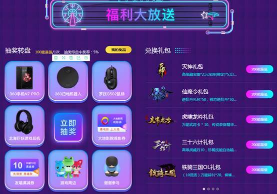 360游戏玩家狂欢节,是360游戏平台每年一度的年终游戏盛典。活动覆盖手游、端游、页游近百款游戏,以高额奖励、回馈玩家为宗旨,让玩家从游戏中玩出更多乐趣。
