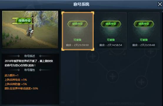4. 小组赛结束后积分商城刷新特殊称号【绿茵传奇】,带上世界杯称号为心仪球队加油!