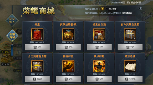 注:回归用户无法参与【荣耀商城】和【赏金猎人】活动