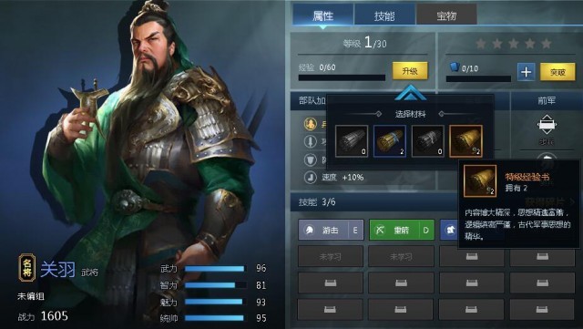 学习技能对英雄的四围属性(武力、智力、魅力、统帅)或英雄标签(文官、英雄、全才、性别)以及英雄兵种(步兵、骑兵、弓兵、弩兵)有要求;