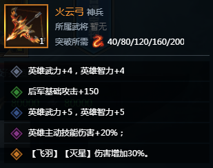 落星:弩兵技能,近战首回合发动,造成伤害,如果敌方后军为弓兵,则伤害提高。