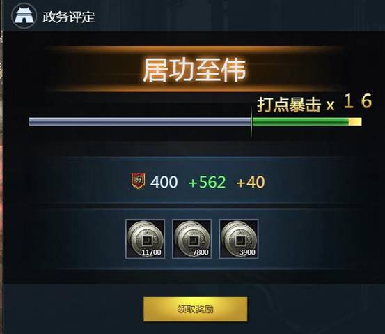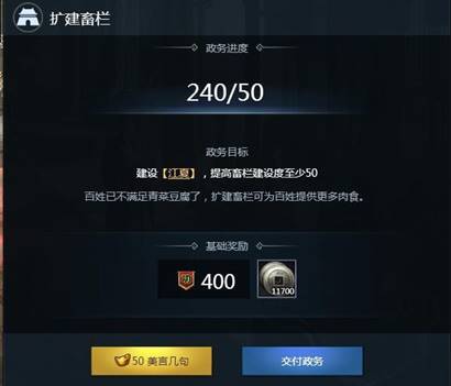 因为政务最后会进行评定,发布奖励。如果希望能得到尽可能多的奖励,你可以加50金进行“打点”官员~