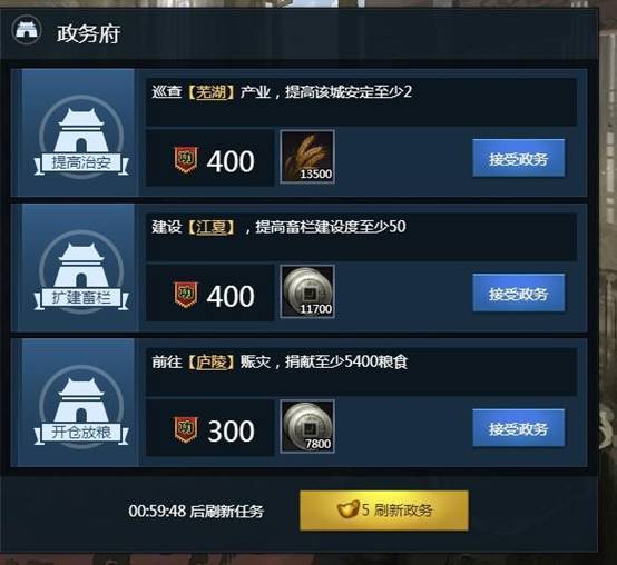 《三十六计》特有的政务系统,不进可以给予玩家一定的资源,还可以让玩家加官进爵,进而提升实力。那么,政务如何做才能收益尽量大呢?